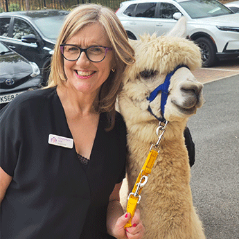 Fairfield Manor Care & Nursing Home near Hitchin recently welcomed some unexpected but very welcome visitors—two alpacas, John Boy and Gary, from Corn Hill Alpacas—as part of a special Make a Wish visit for residents.