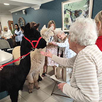 “We’re always looking for meaningful ways to support residents’ interests,” said Home Manager Shibu Thomas. “Animal visits are always popular, and the alpacas brought something new and memorable for everyone involved.”