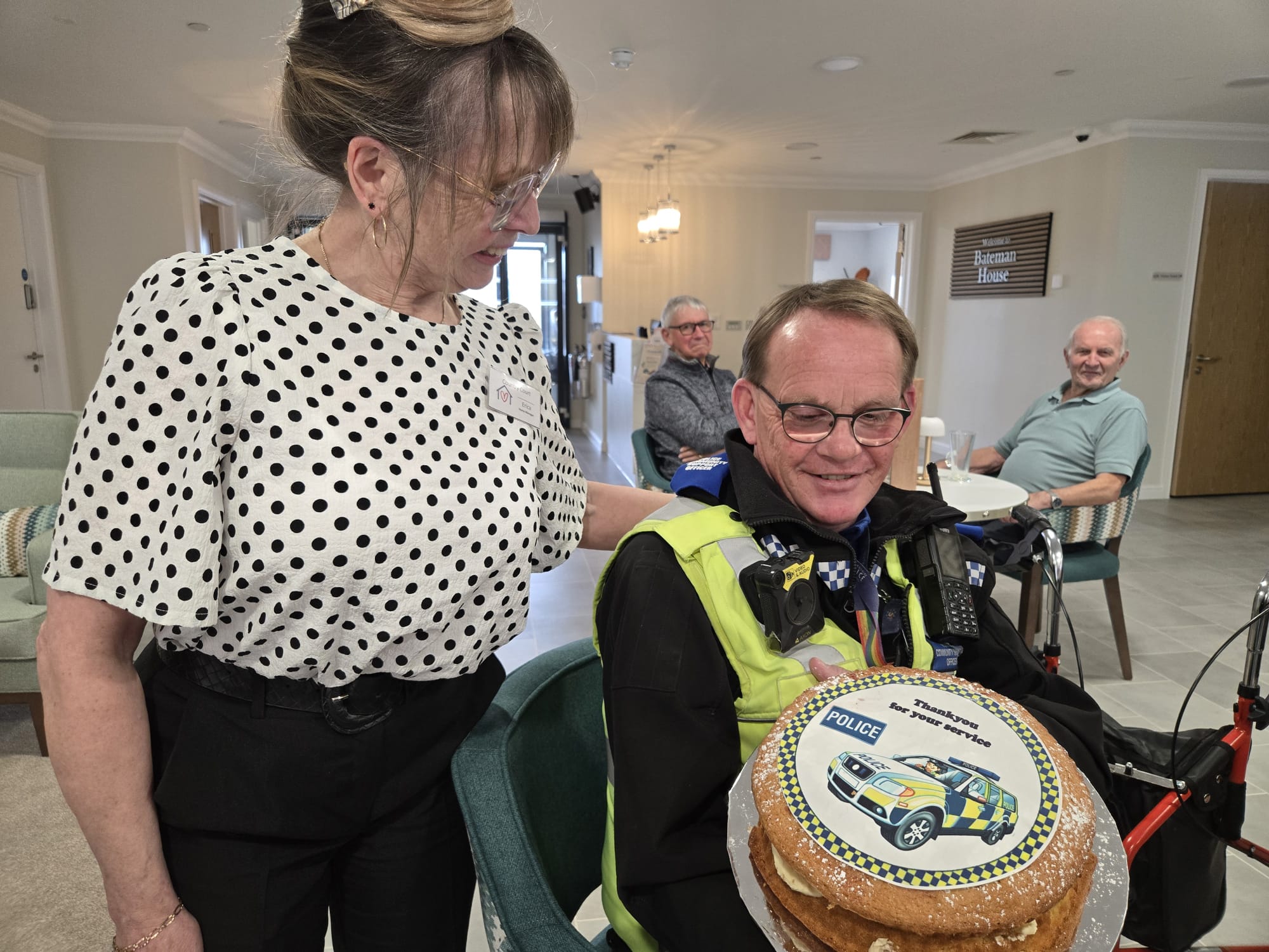 “I went to Bateman House thinking I was attending a meeting and social visit, but I was wrong, they had baked me a cake to say thank you for doing my role as a Police Community Support Officer, which I really enjoy. It was a very kind gesture and much appreciated. Thank you to the residents and team.”