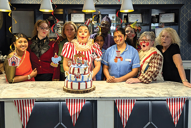 The wellbeing and hospitality teams transformed the home with a circus theme, encouraging everyone, including residents, to dress up for the occasion. Guests enjoyed a delicious buffet spread and admired an impressive circus-themed birthday cake that looked almost too good to cut.