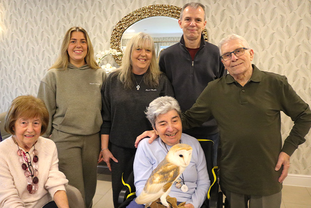 Staff at Carpenders Park Care Home near Watford recently surprised resident Sylvia with a visit from Brenda the barn owl, as part of the home’s ‘Make a Wish’ initiative.
