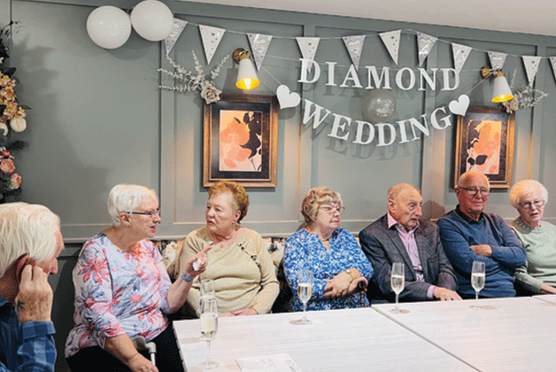 Nogi John, Home Manager, said “We have had a lovely afternoon celebrating Bill and Linda’s 60th Wedding Anniversary. It has been our pleasure to host this at the home for them and all their family and friends. It’s wonderful to see them surrounded by love and laughter and to hear their amazing stories.”