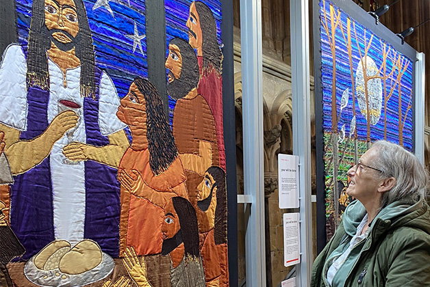 Before heading home, Joan spent time exploring the textile artwork on display inside the Minster, which tells stories from the Bible. The day was rounded off with a late lunch of fish and chips, making it a truly memorable outing.